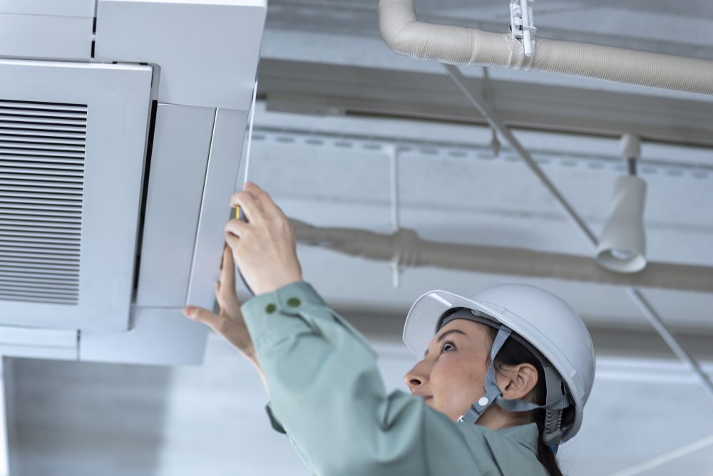 エアコンの室内機・室外機の取り付け、それに伴う電気工事、配管工事など、空調設備の稼動に必要な工事全般をうけたまわります。